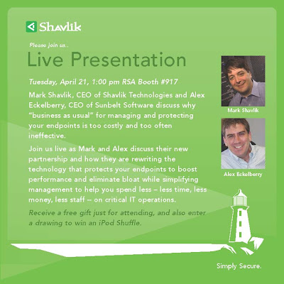 Sunbelt will be at the RSA Conference 2009 in San Francisco next week. Stop by for an engaging session hosted by our technology partner, Shavlik Technologies on Tuesday, April 21 at 1 pm PDT.