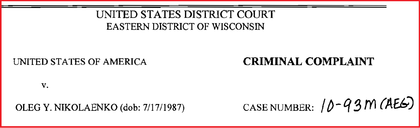 Thanks to Brian Krebs of the Krebs on Security blog for posting the criminal complaint.